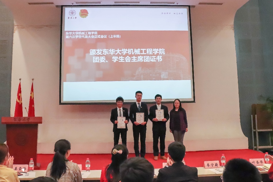4月23日,我院第六次学生代表大会在松江校区图文信息中心第二报告厅举行。beat365体育官方网站院长单鸿波、我院党委副书记李宁蔚、校团委专职团干部、东华大学学生会秘书长封华,兄弟学院团委书记代表、以及我院专兼职辅导员,我院全体学生代表、兄弟学院学生会代表与会。会议听取和审议我院学生会工作报告,听取和审议学代会提案工作报告,选举产生我院第六届学生委员会委员和学生会新一届主席团。