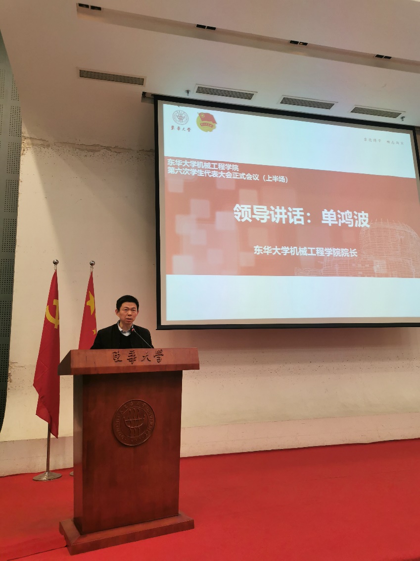 单鸿波在讲话中指出,学生代表大会在学院的建设与发展中,在学生的教育与管理中,在学生的合法权益保障与充分发挥学生主人翁作用等方面,发挥着十分重要的作用。他希望全体学生代表和学院各级学生组织,要进一步加强党史学习教育,传承红色基因,勇担民族复兴大任;不断提高创新能力和工作水平,切实增强学生会组织服务意识和责任意识;注重团队建设,用心打造具有强大凝聚力、影响力的学生组织;最后他希望学生骨干发挥主人翁意识,积极投身于学院建设,为学院的发展贡献青春力量。