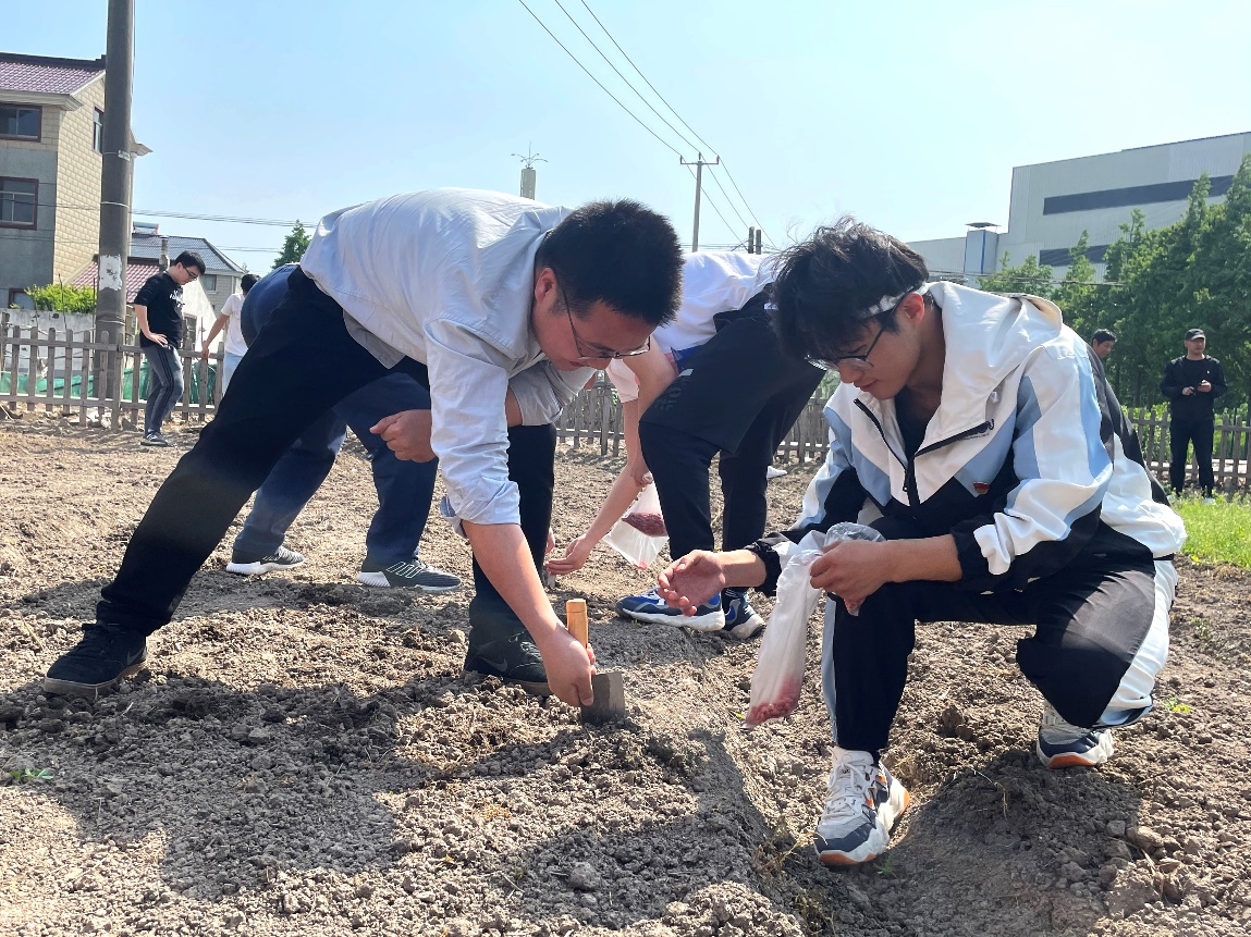 劳动精神是在劳动实践中培养出来的,为进一步弘扬劳动精神,师生党员走进厨余化春泥试验田播种花生,实实在在地开展劳动、探寻农耕根脉,切切实实地在劳动中出力流汗、在劳动中感受劳动的艰辛与收获,体认到最光荣、最崇高、最伟大、最美丽的劳动价值,躬身劳动实践,厚植劳动实践沃土。