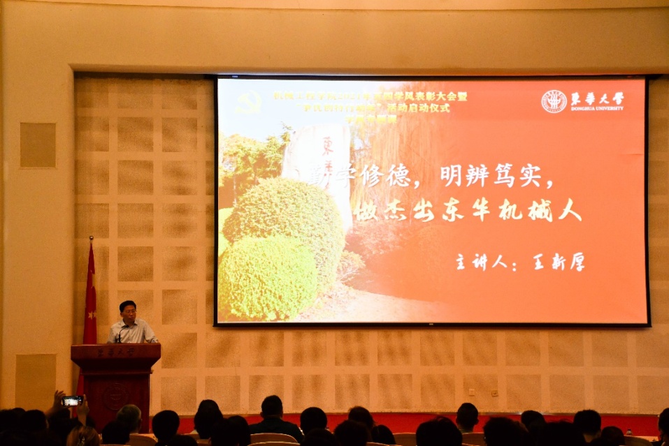beat365体育官方网站党委书记王新厚上学风专题课,他指出,重视学风建设是党的优良传统,弘扬优良学风是全面深化改革的必然要求,更是建设“双一流”高校的迫切需要。学风既是大学精神和文化的集中体现,也是衡量和评价一所大学办学品位和育人环境的重要标志。学风建设早已融入到校训之中,“崇德博学,砺志尚实” 在于激励全校师生修身立德、博学专攻、磨心砺志,求真求新,德才兼备。他强调,弘扬优良学风宜多管齐下、常抓不懈,一是要大力弘扬追求真理、严谨治学的求实精神;二是要大力弘扬甘为人梯、奖掖后学的育人精神;三是要大力弘扬志存高远、刻苦钻研的求学精神。他希望学院师生携手同行,践履东华精神,让“中国智造”“中国创造”扬帆起航,做杰出东华机械人。