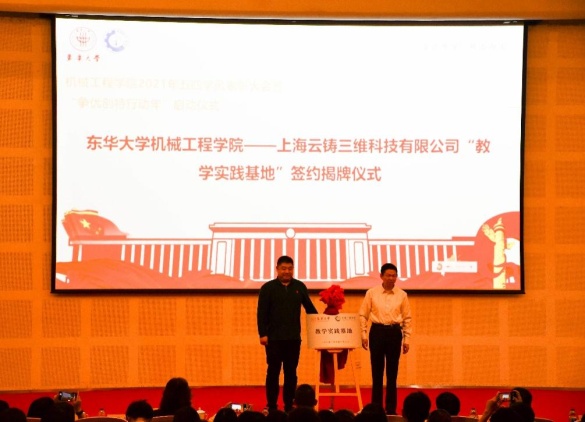beat365体育官方网站院长单鸿波与上海沪工焊接集团股份有限公司人力资源总监唐志娟签订“教学实践基地”续约协议,和上海云铸三维科技有限公司总经理李俊锋签订合作协议并为“教学实践基地”揭牌,通过校企密切合作,进一步提升学院学术与就业的核心竞争力。