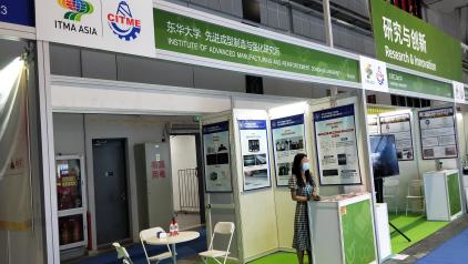 我院组织了一批学院优秀科研成果参加本届展览会,受到与会参观人员的高度关注,其中:“全数字化簇绒地毯织机”成果通过若干个电子罗拉同步控制纱线张力以及喂纱量形成不同高度的绒圈,结合不同颜色纱线的排列组合,提高了企业产能;“数字化经编机系列装备及其智能生产关键技术”成果实现了工艺参数数字化控制、成圈三参数数字化调控,实现了智能故障诊断和远程运维等功能;“增材印花鞋面及其运动鞋自动化生产线”成果原创开发了3D增材印花一体化鞋面成型工艺,研发成功了冷粘、连帮注塑运动鞋机器人自动化生产线;“高档织针研发系列产品”成果已被织针行业推广应用,有力推动了电脑横机移圈针、棉袜针和高速经编机槽针的国产化进程;“金属强化及涂层制备技术”成果依托于国家863项目、上海市重点攻关项目等,极大提高了热轧带钢用铸铁轧辊的使用寿命;“制造全流程的数据可视化及交互系统”成果基于业务需求与精益生产理念,制定了执行系统中生产执行、质量管理、设备管理、仓储管理、运维管理的规则与流程,有效降低了制造资源浪费,实现了制造全流程的数据可视化及交互;“织物疵点在线检测系统”以计算视觉为技术核心,研发了影像检测剔除系统、封口影像检测剔除系统、材料定位影像检测控制系统,填补了国内卫生用品在线检测技术空白;“新兴纺织服装产业集聚区网络协同制造集成系统”成果以多品种、小批量、个性化定制纺织服装产品生产为对象,研发了基于工业互联网模式的智能工厂应用示范并实现区域内推广;“基于多孔介质干燥理论的针织物烘干过程数值模拟及参数调控”成果依托国家重点研发计划,为平幅织物烘干工艺的改进和设备研制提供了解决方案;“服装生产线数字孪生系统”成果依托上海市经信委项目,促进了服装生产线管理效率的提高;“化纤长丝外观在线智能检测系统”成果攻克了化纤长丝外观视觉检测技术,实现了连续、高效的在线智能检测,突破了化纤长丝卷装外观智能检测系统关键技术并产业化,提升了行业的生产效率;“全自动喷丝板智能化检测及数据管理系统”成果利用机器视觉检测技术,实现了喷丝板孔全自动检测。